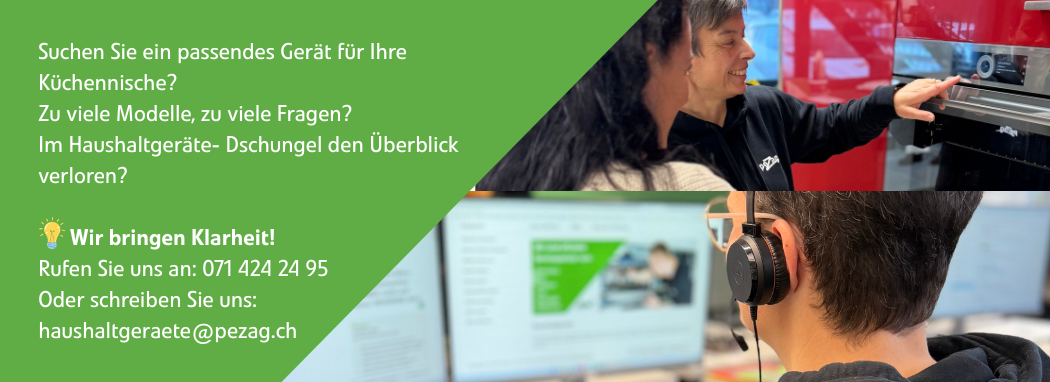 Entdecken Sie die Vielfalt von Pezag24: Von qualitativ hochstehenden Grossgeräten wie Waschmaschinen und Tumbler, Backöfen und Steamer, bis hin zu erlesenen Kleingeräten wie Kaffeemaschinen, Staubsauger und der neusten Generation Rasenroboter. Sie bestellen, wir liefern: Unkompliziert, schnell und zuverlässig.