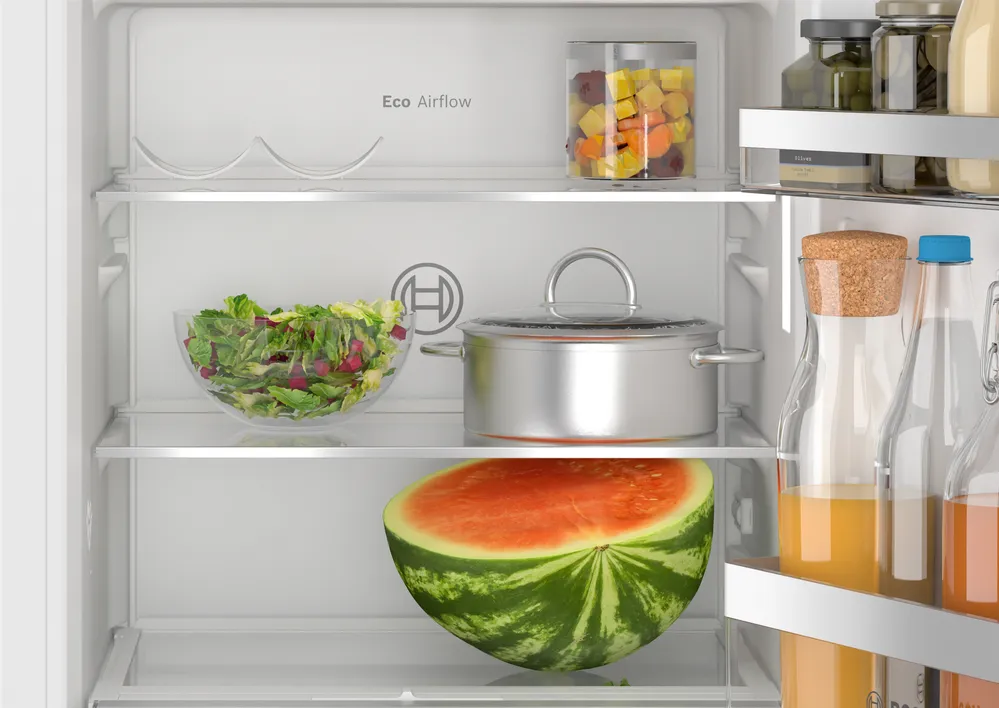 Der geräumige Einbaukühlschrank mit VitaFresh XXL-Schublade für Obst und Gemüse, **** Gefrierfach und hochstabilen Türablagen sorgt für eine optimale Lagerung der Lebensmittel.