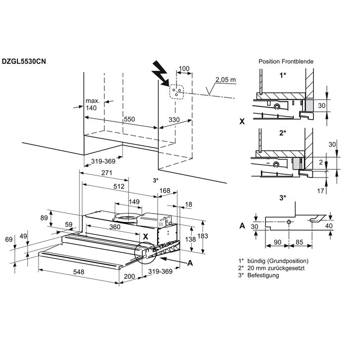 Produktinformationen "Electrolux Einbau-Flachschirmhaube mit Metallauszug, Abluft, 55 cm, Chrom, DZGL5530CN"