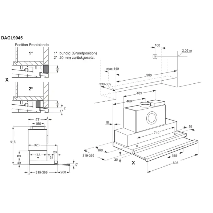 Produktinformationen "Electrolux Einbau-Flachschirmhaube mit Metallauszug, Abluft/Umluft, A, 90 cm, Chrom, DAGL9045CN"