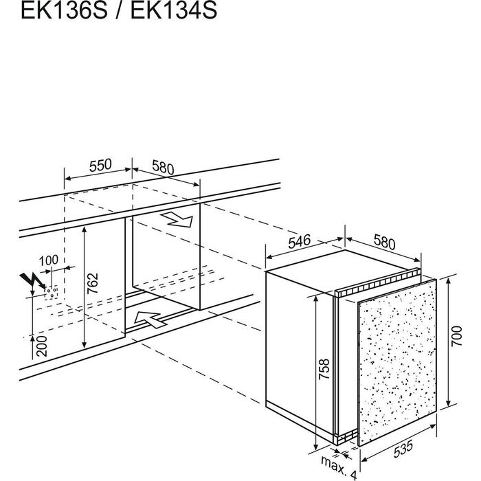Electrolux Einbau-Kühlschrank mit Gefrierfach, D, 75.5 cm, Weiss, Türanschlag rechts, EK136SRWE