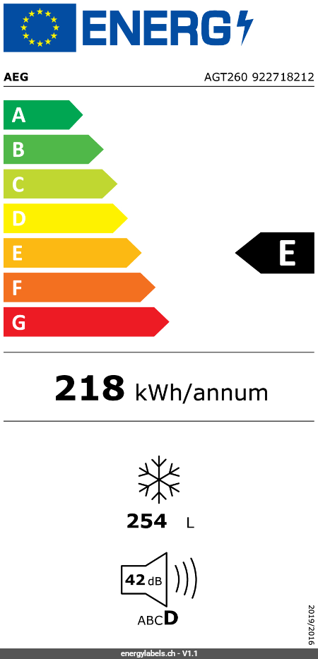 AEG Gefriertruhe freistehend, 254 L, 960 mm, E, AGT260