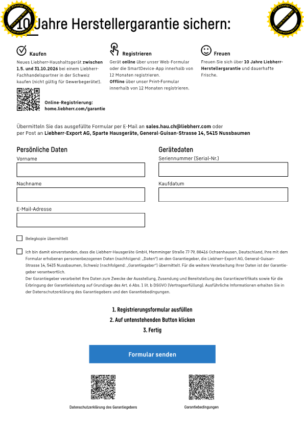 Gültig auf alle Haushaltsgeräte von Liebherr vom 01.05. bis 31.10.2026.