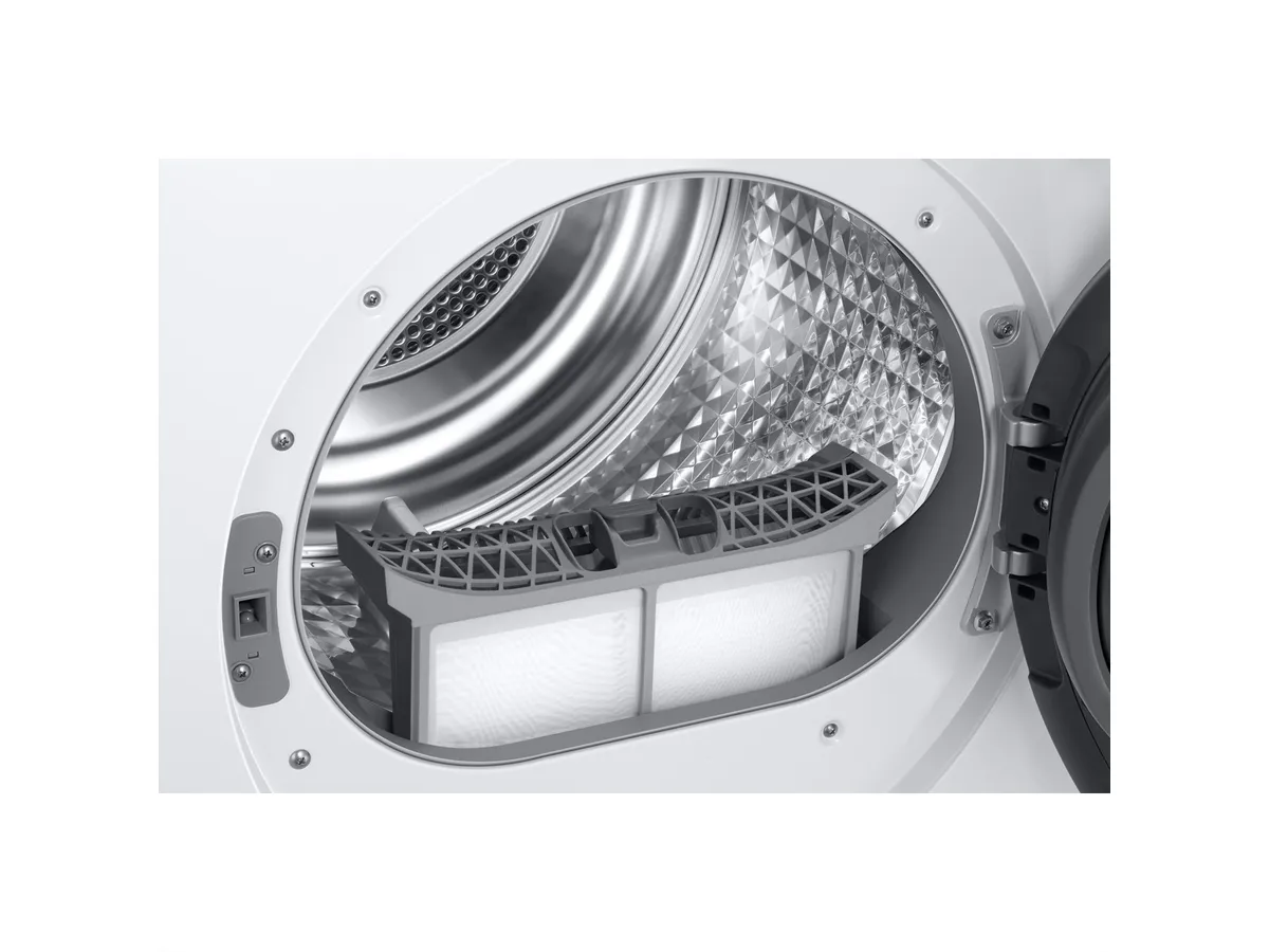 Geniesse schnelleres und präzises Trocknen mit 20 % weniger Energieverbrauch und 20 % kürzerer Trocknungszeit. AI Dry analysiert den Feuchtigkeitsgehalt und die Trocknungstemperatur, während es vier Gewebearten erkennt, um die Leistung des Inverter Kompressors und des Wärmetauschers optimal anzupassen. So wird immer die ideale Wärmemenge entsprechend dem Gewicht und der Feuchtigkeit jeder Ladung erzeugt.