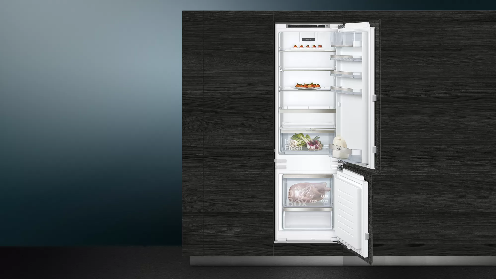 coolEfficiency Einbau-Kühl-Gefrier-Kombination mit hyperFresh plus Box für bis zu 2 Mal länger frisches Obst und Gemüse.