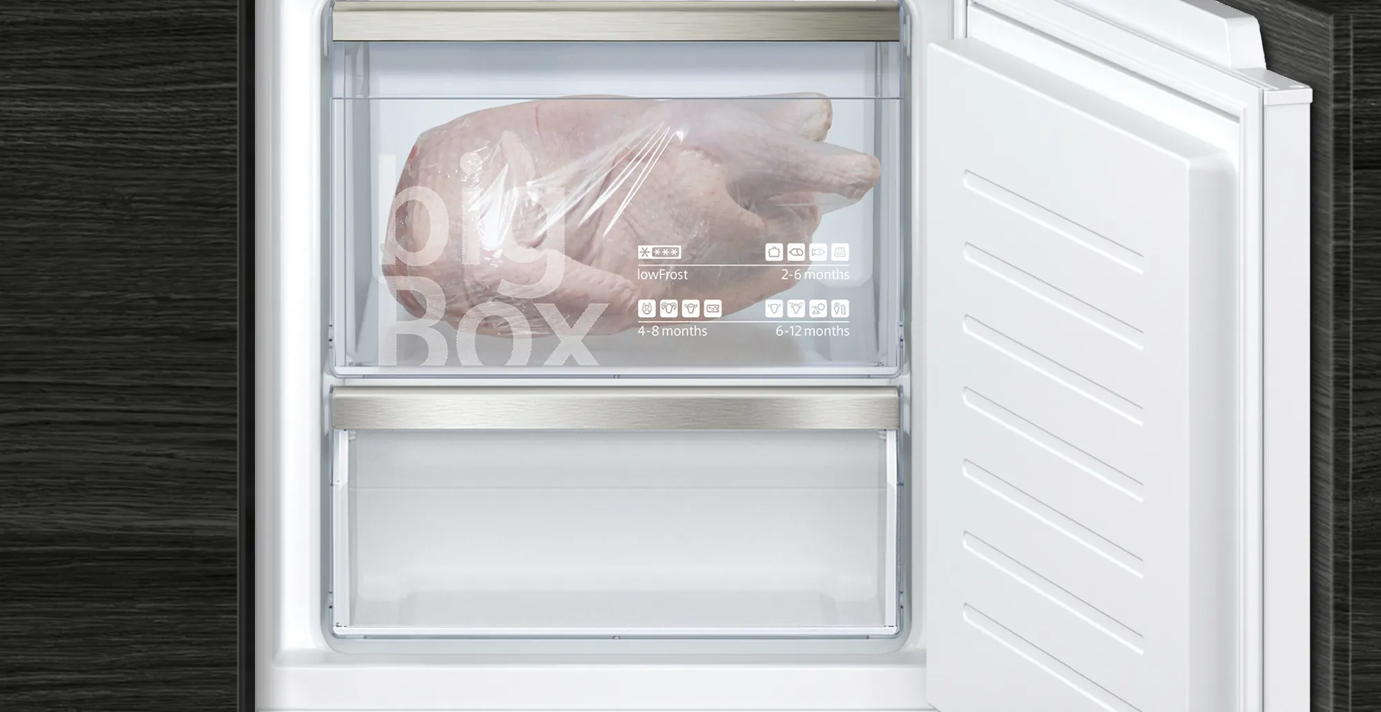 - varioZone: Schubladen und Glasablagen lassen sich problemlos neu anordnen, um den Platz in deinem Gefrierbereich flexibel zu nutzen.