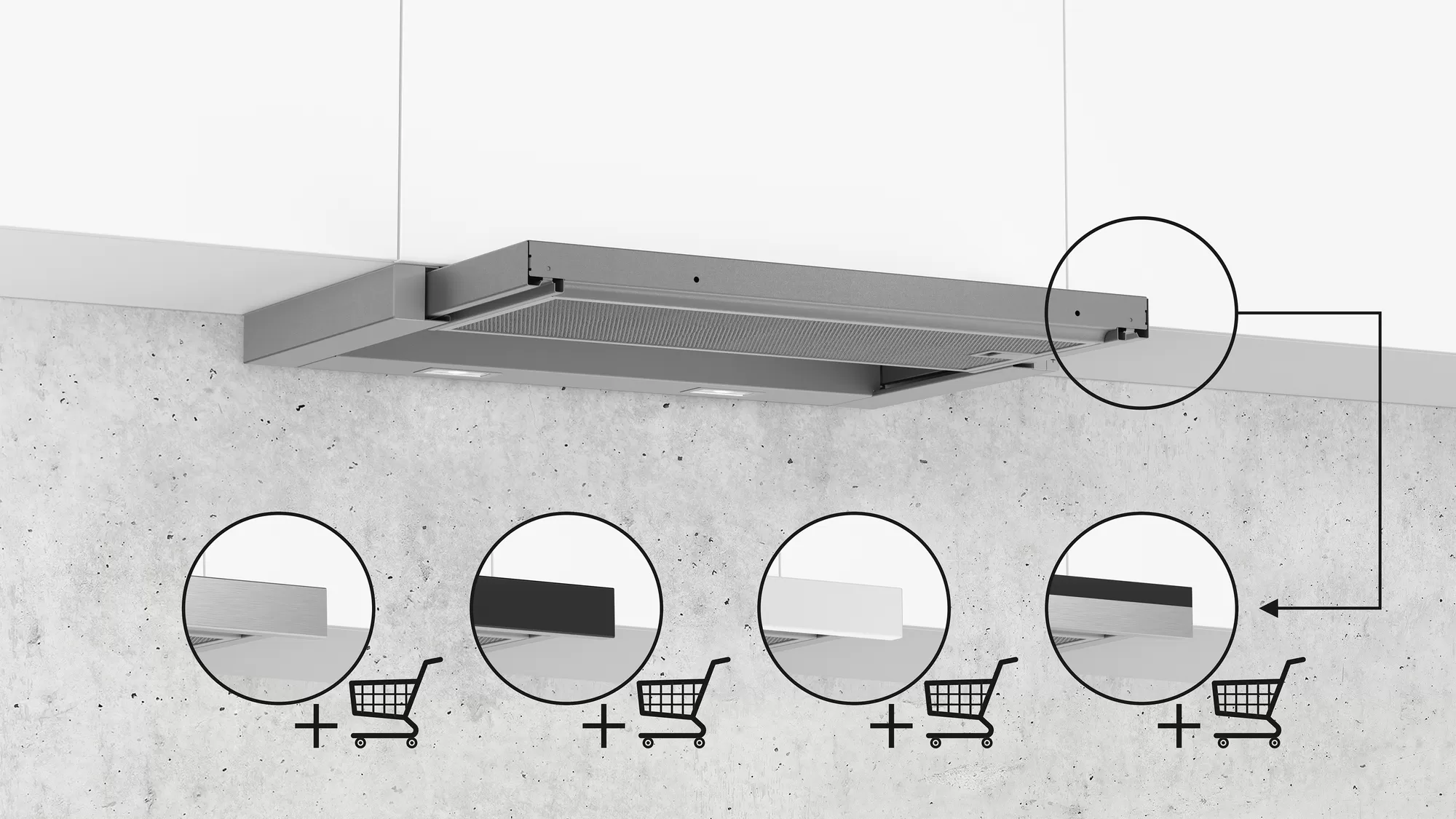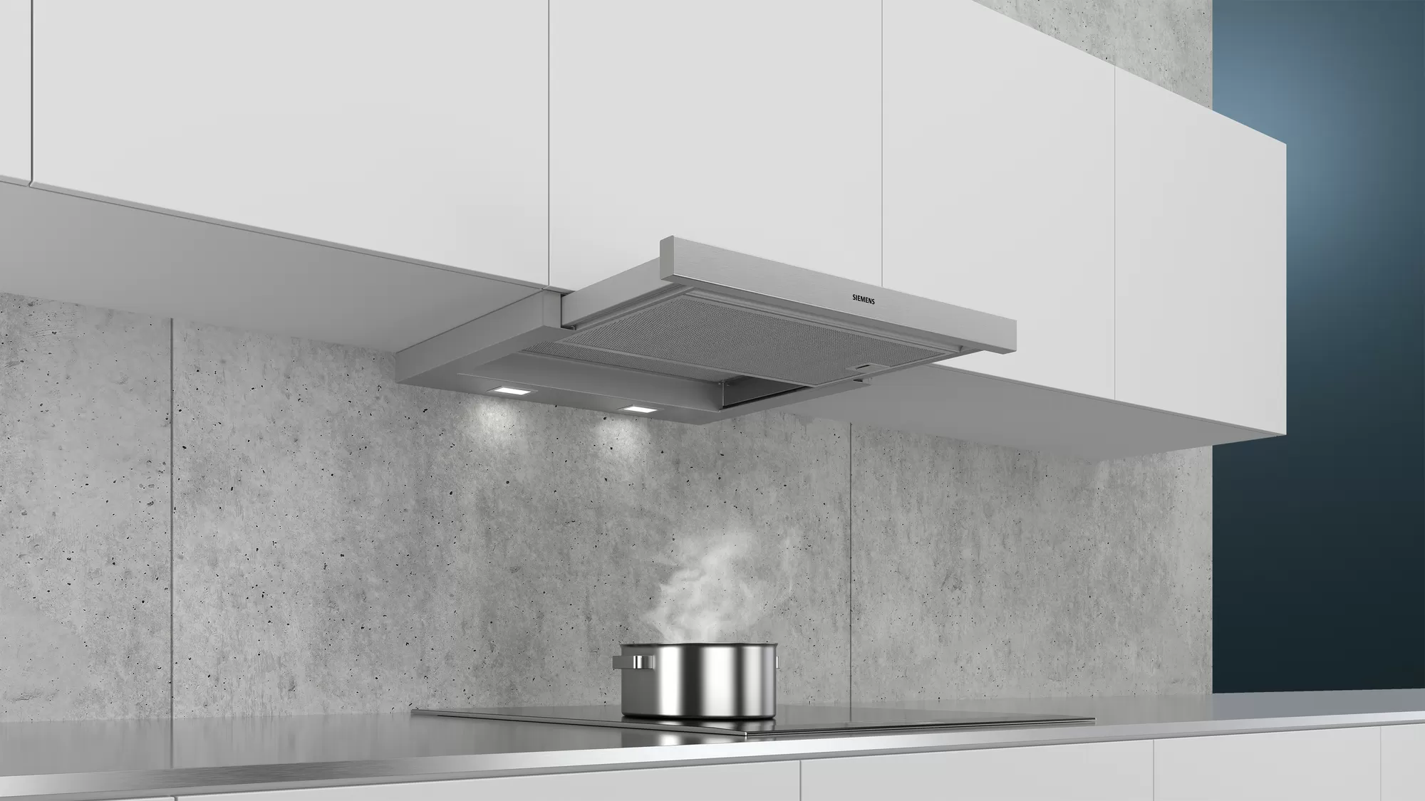 Die leistungsstarke Flachschirmhaube für eine fast unsichtbare Platzierung im Oberschrank.