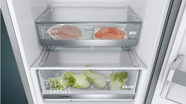 coolEfficiency Kühl-Gefrier-Kombination mit der Energieeffizienzklasse C, lowFrost und hyperFresh ◄0°C► Box für bis zu 2x längere Frische bei Fisch und Fleisch.