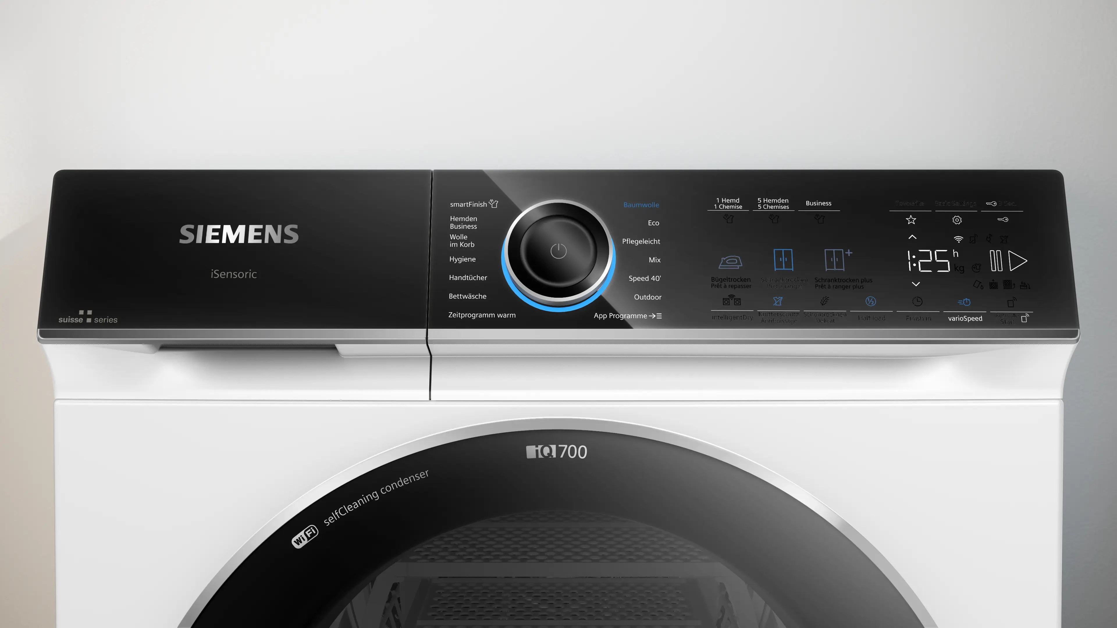 Der intelligente Trockner bietet hervorragende Leistung mit minimalem Energieverbrauch dank des selbstreinigenden Kondensators, AutoDry, intelligentDry und smartFinish.