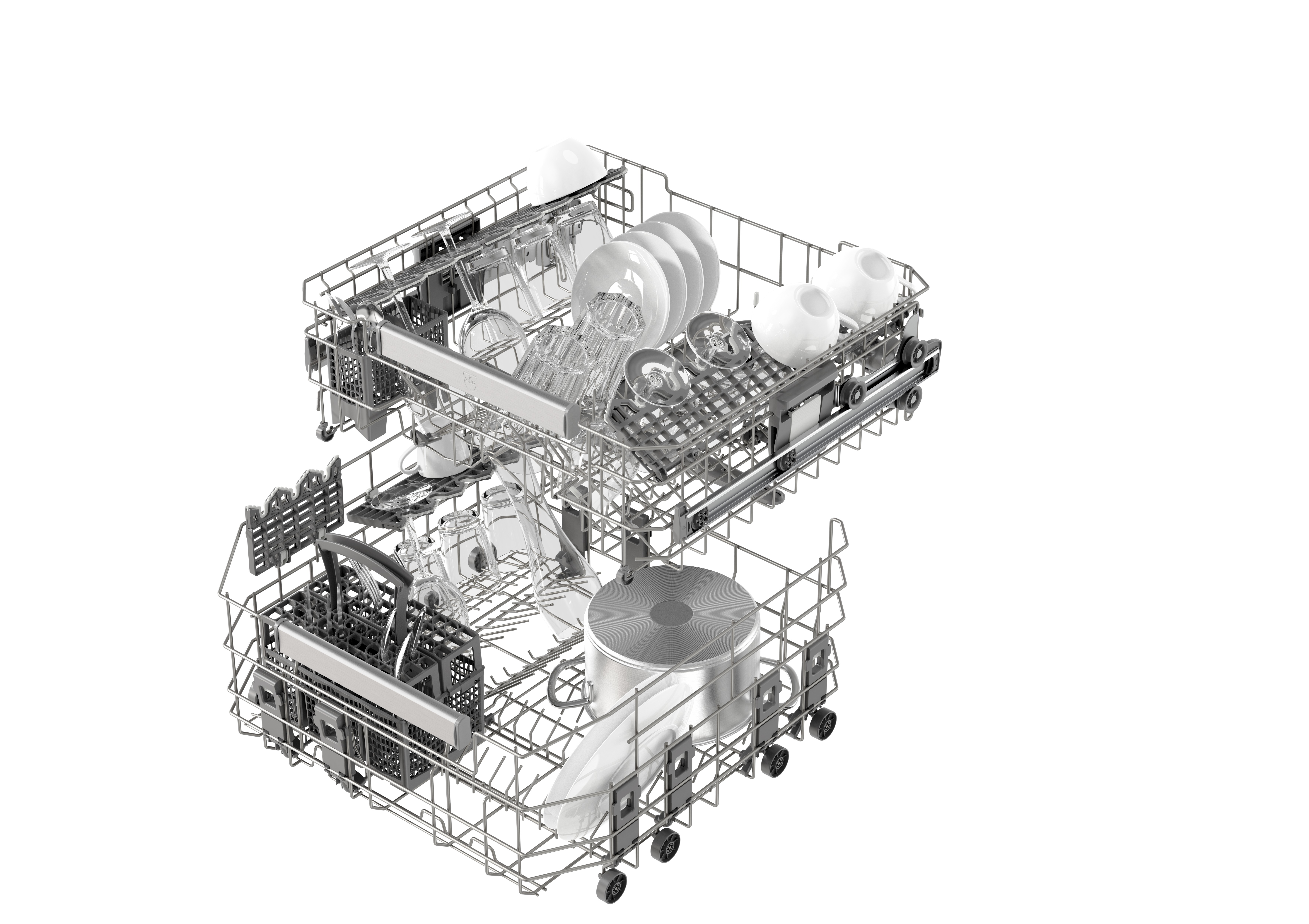 Ein vielseitiger Allrounder mit Flexibilität für grosses Geschirr und speziellen Halterungen für hohe Gläser. Er ist als Standard- oder Grossraummodell sowie in integrierter oder vollintegrierter Variante erhältlich.