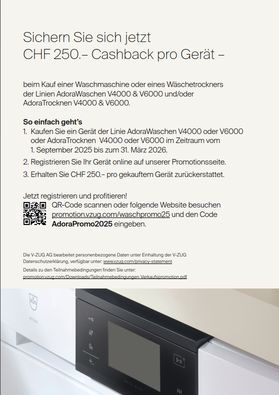 - Registrieren Sie sich nach dem Kauf unter promotion.vzug.com/waschpromo25