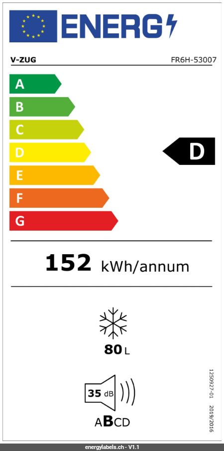 Produktinformationen "V-ZUG Gefrierschrank Freezer V600 8UN, vollintegrierbar, 60 cm, Türanschlag links, 5300700000"